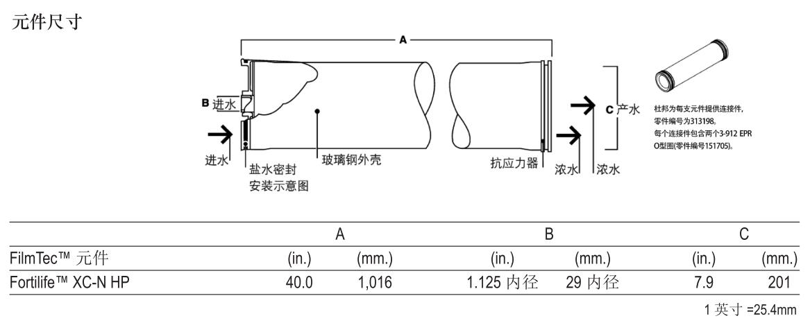 ● 膜元件配合公稱內(nèi)徑為8英寸(203mm)的壓力容器