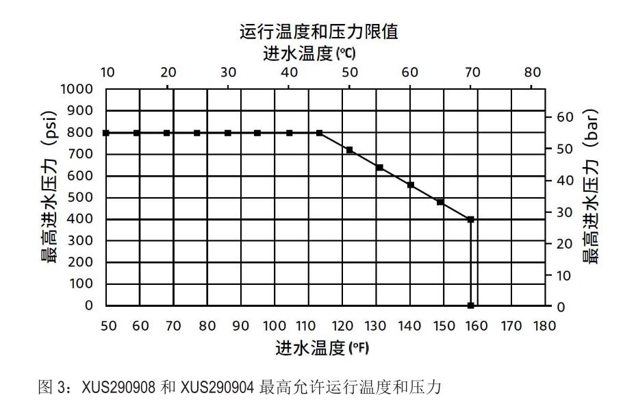 a 見圖 3,XUS290908 和 XUS290904 最高允許運行溫度和壓力