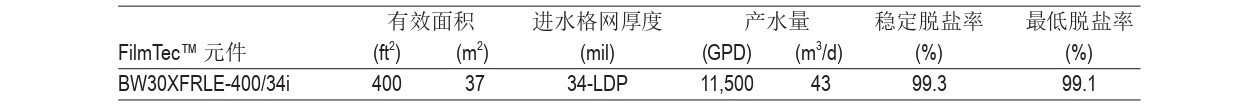 FilmTec™ BW30XFRLE-400/34i 具有以下特點: