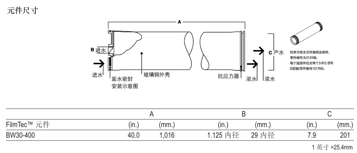 4 保證有效面積±3%。杜邦水處理解決方案采用的有效膜面積不同于有些膜供應商常采用的公稱膜面積。