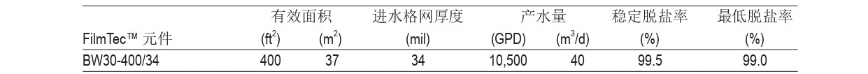 FilmTec™ BW30-400/34元件經(jīng)證明,具有優(yōu)異的性能: