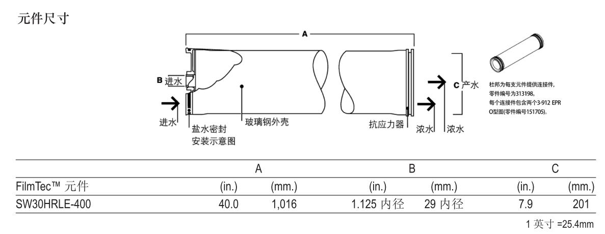 ● 膜元件配合公稱內(nèi)徑為8英寸(203mm)的壓力容器