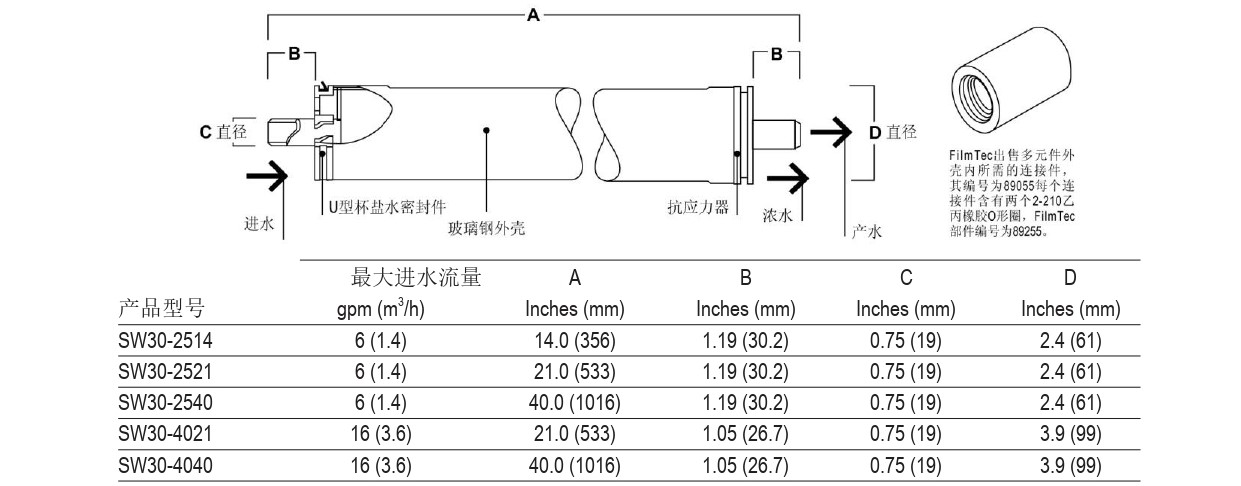 SW30-4040元件配公稱(chēng)內(nèi)徑4.0英寸的壓力容器
