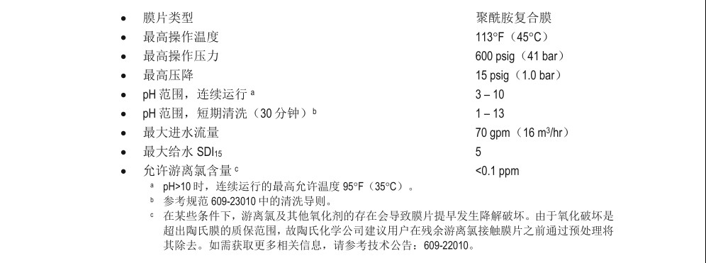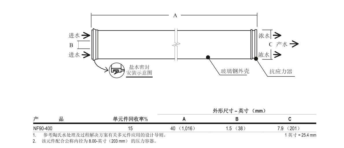 陶氏 FILMTEC™ NF90-400納濾膜元件面積大,產(chǎn)水量高。特別適用于高度脫除鹽分,硝酸 鹽,鐵,殺蟲劑、除草劑和THM前驅(qū)物等有機化合物。