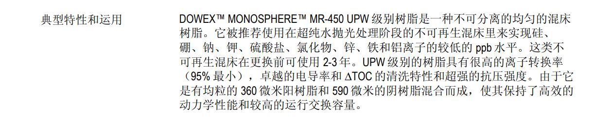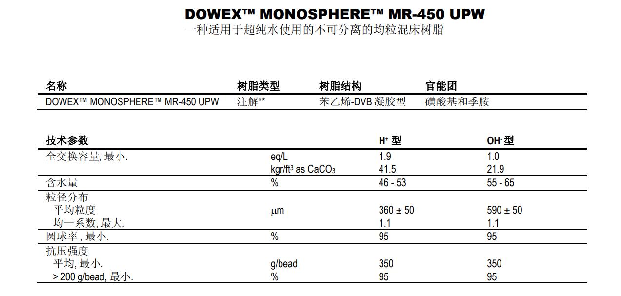 MONOSPHERE MR-450 UPW離子交換樹脂