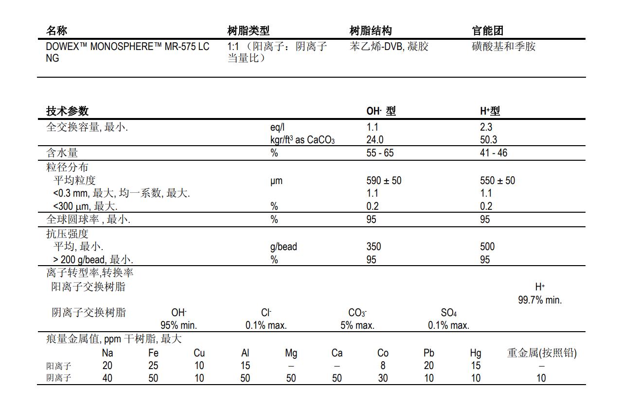 MONOSPHERE MR-575LC NG離子交換樹脂